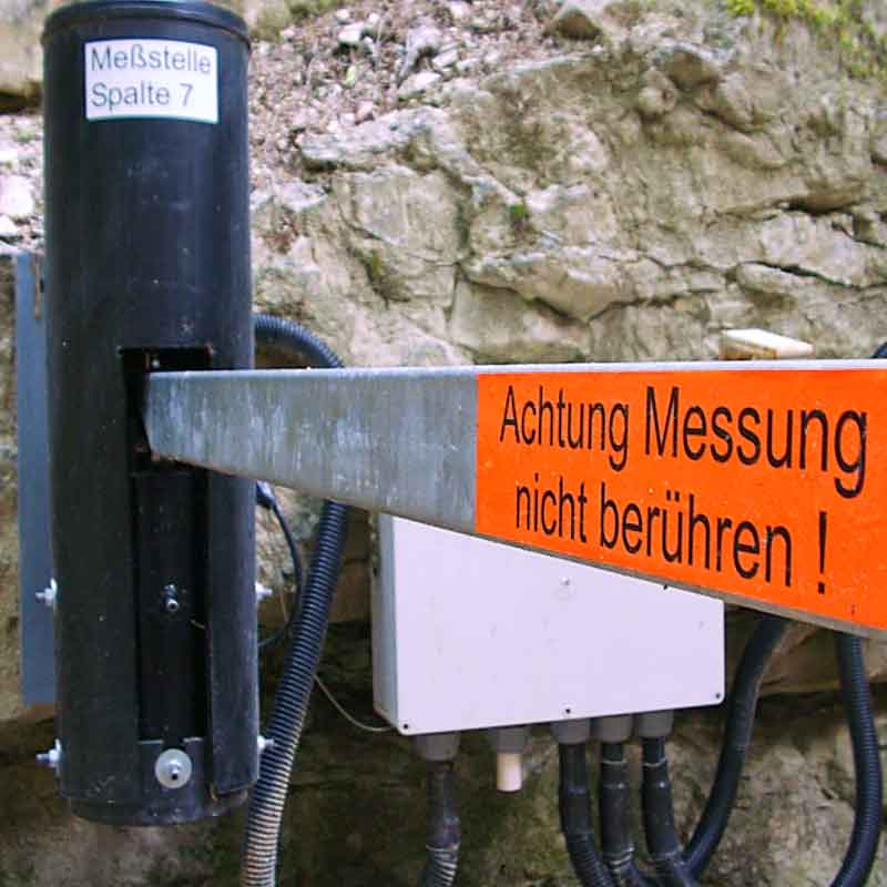 An fünf Felsklüften wurden Sensoren montiert, die die Bewegung millimetergenau erfassen. Die Sensordaten wurden damals über eine 480-MHz-Richtfunkstrecke ins Tal gefunkt.